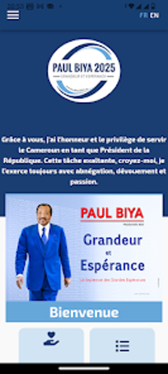 Paul Biya 2025 เป็นแอปพลิเคชันอย่างเป็นทางการที่ออกแบบมาสำหรับการเลือกตั้งประธานาธิบดีปี 2025 โดยมีเป้าหมายเพื่อให้ข้อมูลและมีส่วนร่วมกับประชาชนเกี่ยวกับวิสัยทัศน์ของความไว้วางใจและเสถียรภาพ แอปนี้มีเอกลักษณ์ทางสายตาที่แข็งแกร่งด้วยสีน้ำเงินประธานาธิบดีที่ลึกซึ้ง ซึ่งสื่อถึงความชอบธรรม และมีการอัปเดตข่าวสารแบบเรียลไทม์ สุนทรพจน์ และข้อความจากประธานาธิบดี Paul Biya ผู้ใช้สามารถเข้าถึงเว็บไซต์อย่างเป็นทางการได้อย่างง่ายดายและสำรวจแกลเลอรีมัลติมีเดียที่แสดงช่วงเวลาสำคัญจากการเลือกตั้ง